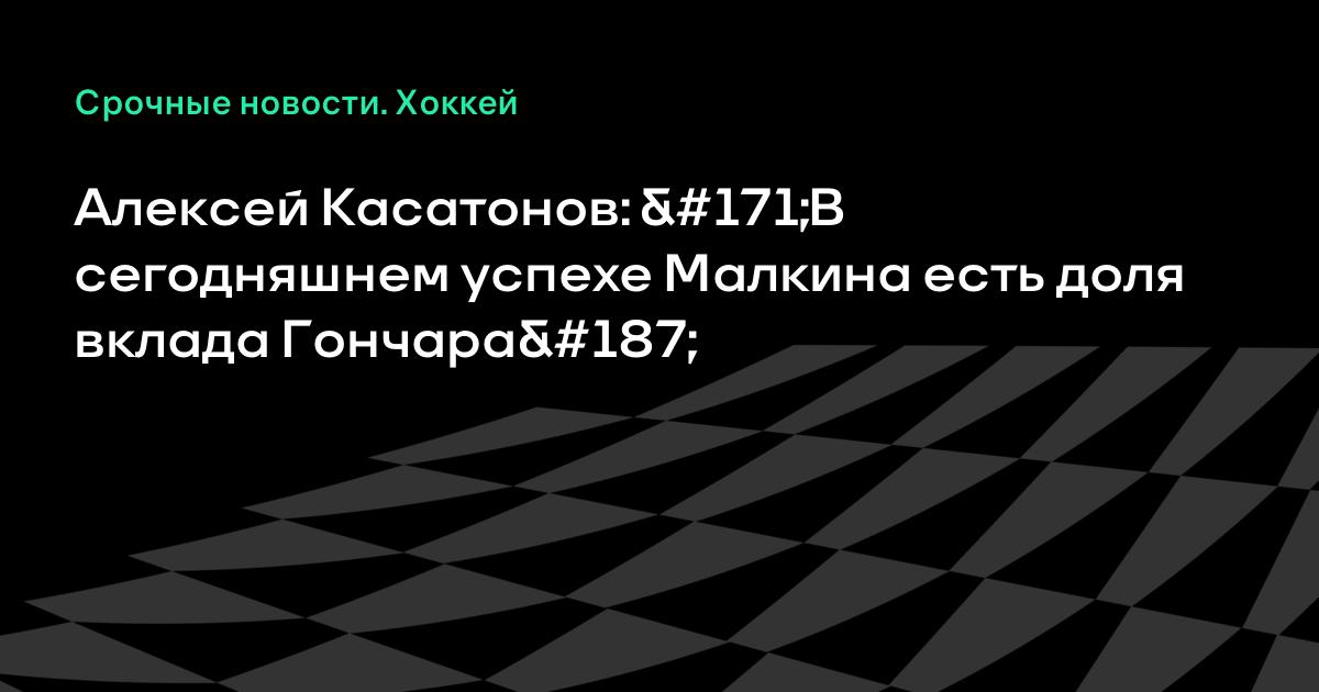 Алексей Касатонов: «В сегодняшнем успехе Малкина есть доля вклада Гончара»