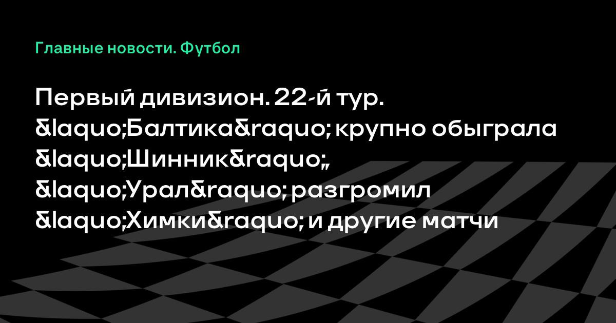 Первый дивизион. 22-й тур. «Балтика» крупно обыграла «Шинник», «Урал» разгромил «Химки» и другие матчи