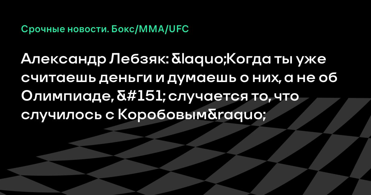 Александр Лебзяк: «Когда ты уже считаешь деньги и думаешь о них, а не об Олимпиаде, случается то, что случилось с Коробовым»