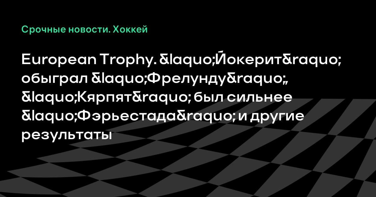 European Trophy. «Йокерит» обыграл «Фрелунду», «Кярпят» был сильнее «Фэрьестада» и другие результаты