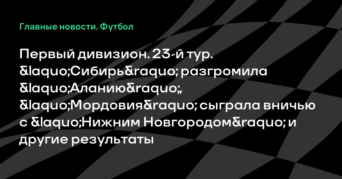 Первый дивизион. 23-й тур. «Сибирь» разгромила «Аланию», «Мордовия» сыграла вничью с «Нижним Новгородом» и другие результаты
