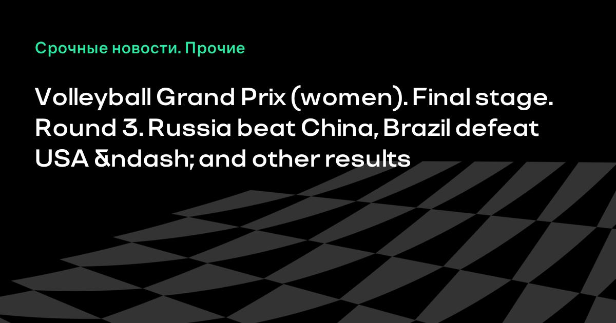 Volleyball Grand Prix (women). Final stage. Round 3. Russia beat China, Brazil defeat USA – and other results