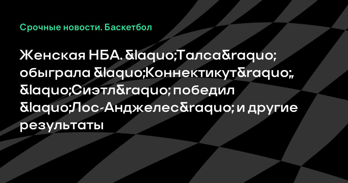Женская НБА. «Талса» обыграла «Коннектикут», «Сиэтл» победил «Лос-Анджелес» и другие результаты