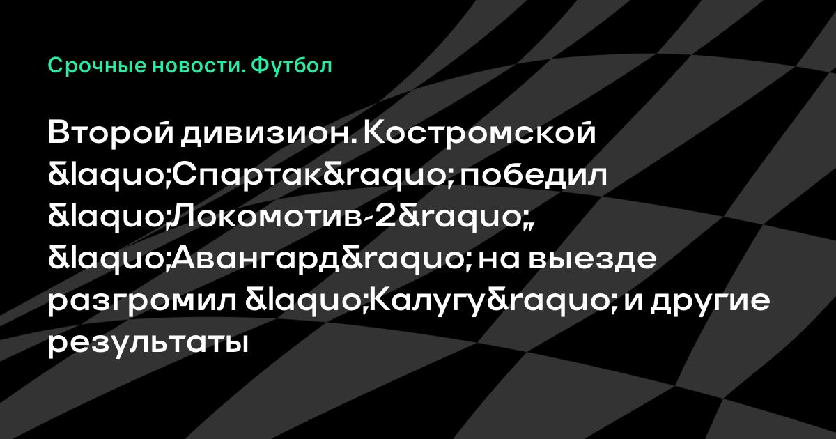 Второй дивизион. Костромской «Спартак» победил «Локомотив-2», «Авангард» на выезде разгромил «Калугу» и другие результаты
