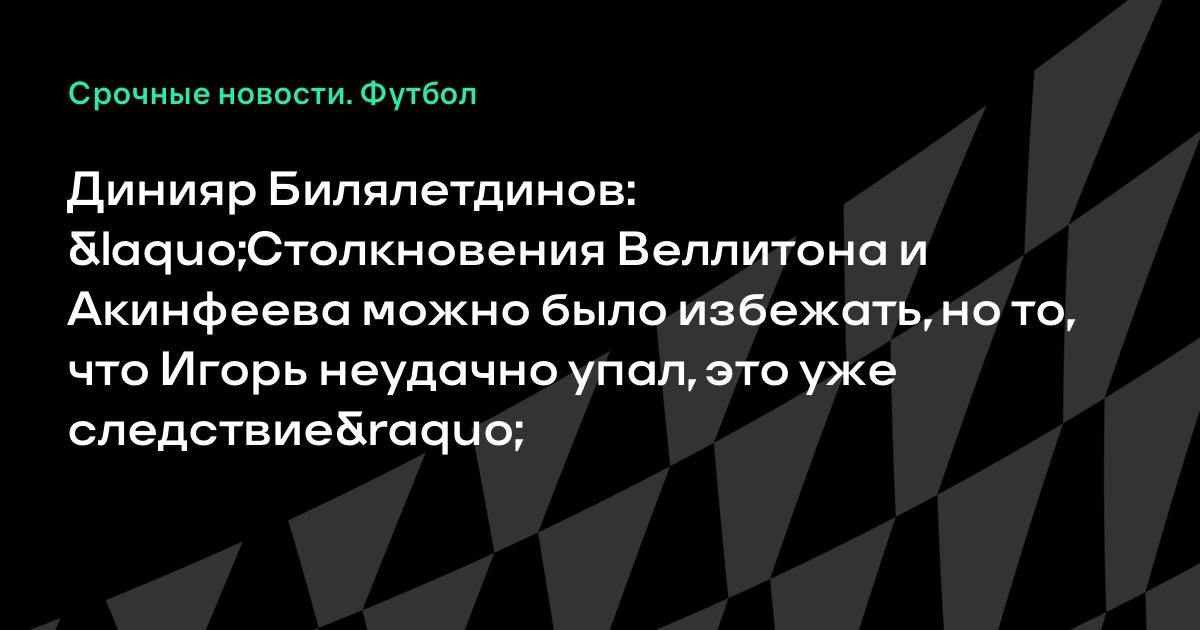 Полузащитник «Эвертона» и сборной России Динияр Билялетдинов прокомментировал столкновение между голкипером ЦСКА Игорем Акинфеевым и форвардом «Спартака» Веллитоном, в результате которого армеец получил травму.