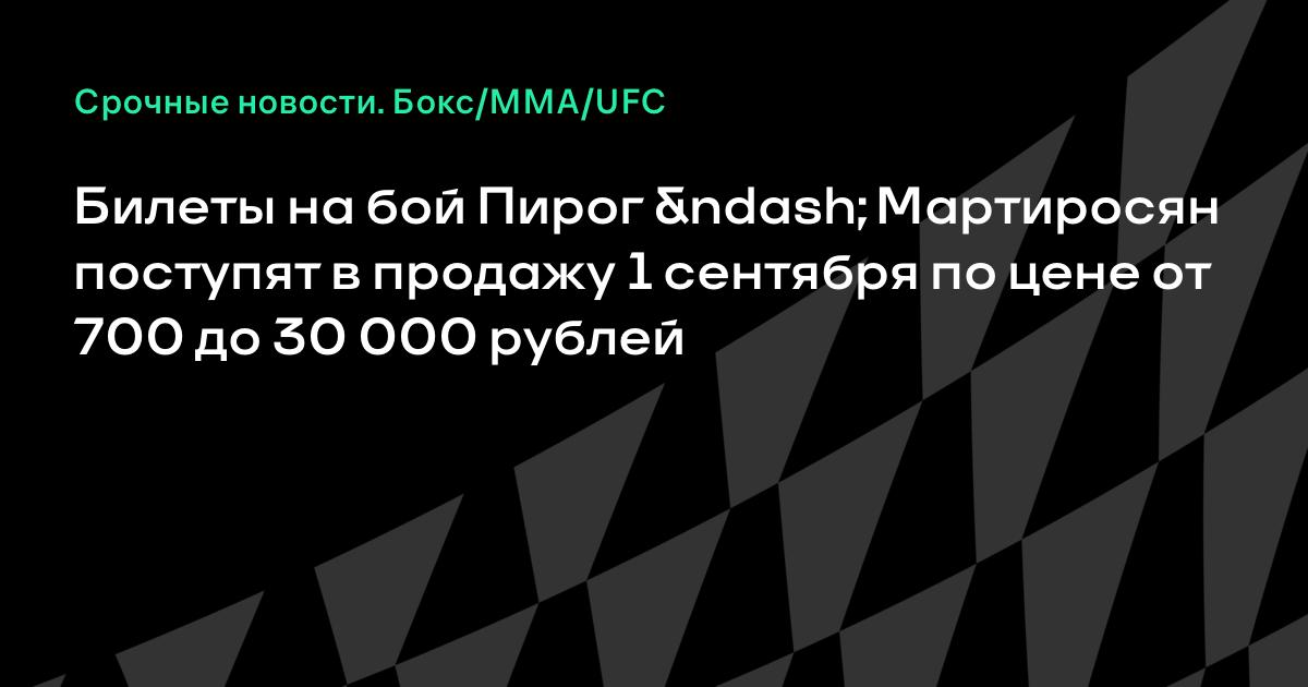 Билеты на бой Пирог – Мартиросян поступят в продажу 1 сентября по цене от 700 до 30 000 рублей