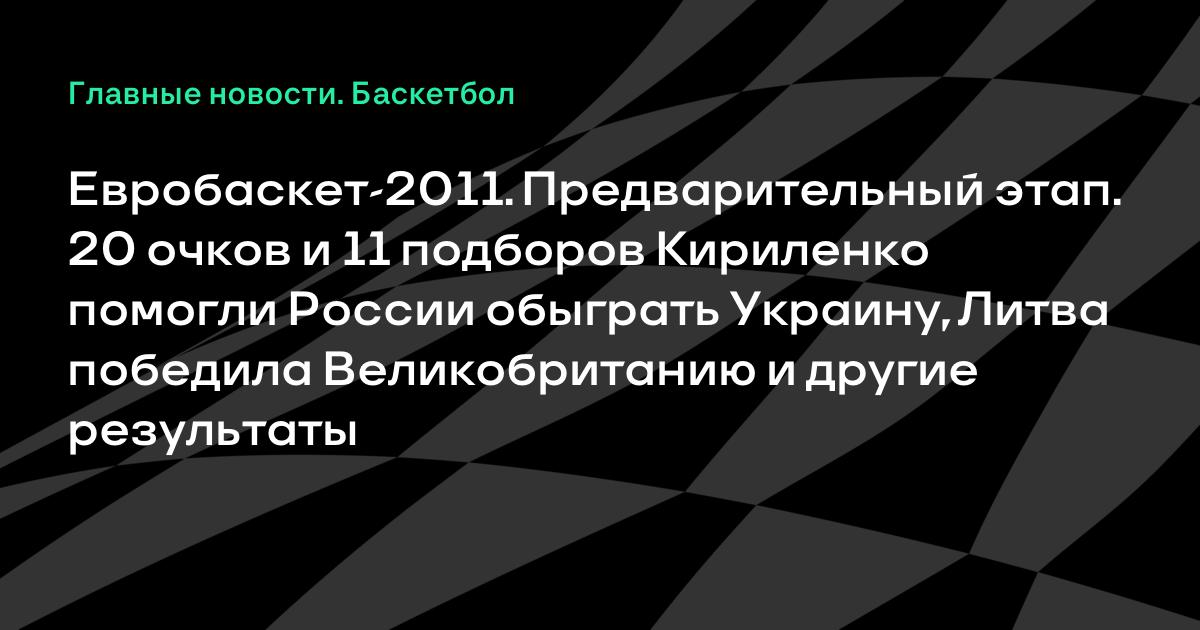 Евробаскет-2011. Предварительный этап. 20 очков и 11 подборов Кириленко помогли России обыграть Украину, Литва победила Великобританию и другие результаты