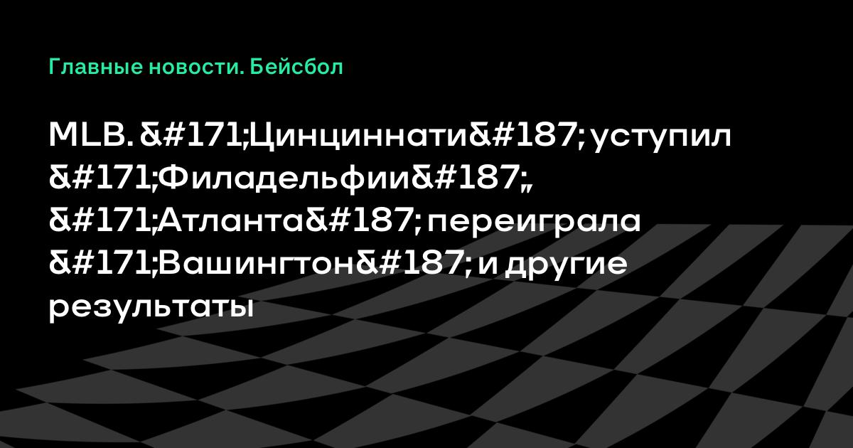 MLB. «Цинциннати» уступил «Филадельфии», «Атланта» переиграла «Вашингтон» и другие результаты