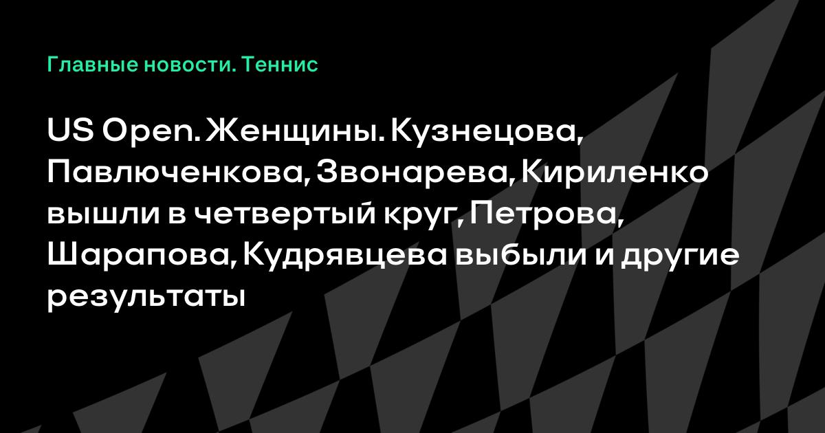 US Open. Женщины. Кузнецова, Павлюченкова, Звонарева, Кириленко вышли в четвертый круг, Петрова, Шарапова, Кудрявцева выбыли и другие результаты