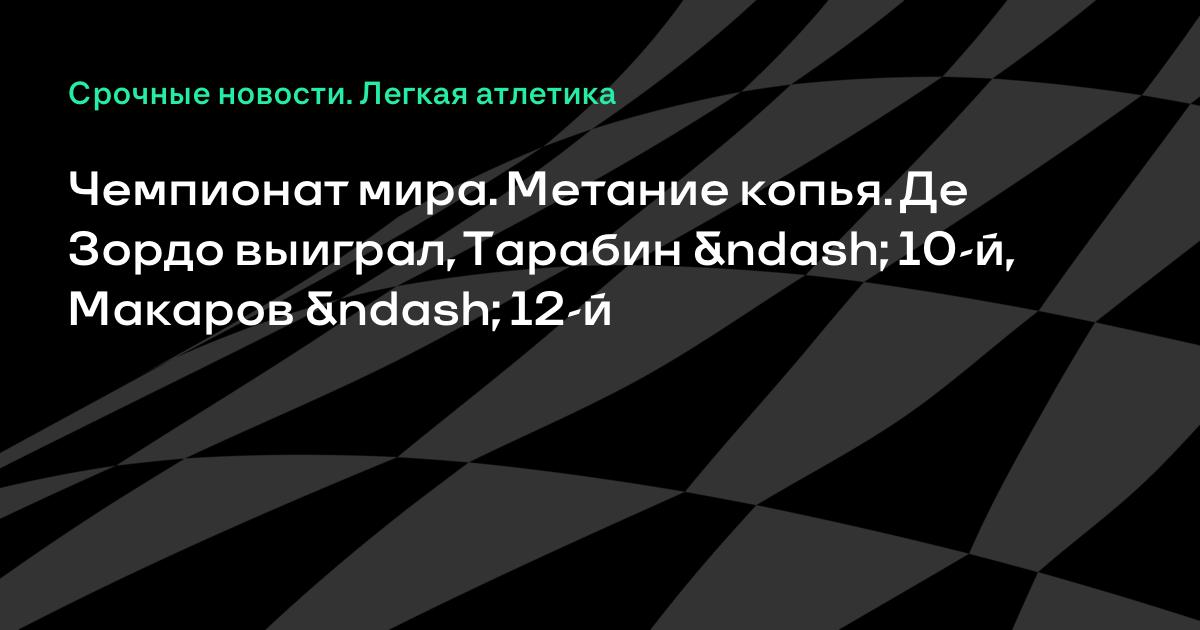 Чемпионат мира. Метание копья. Де Зордо выиграл, Тарабин – 10-й, Макаров – 12-й