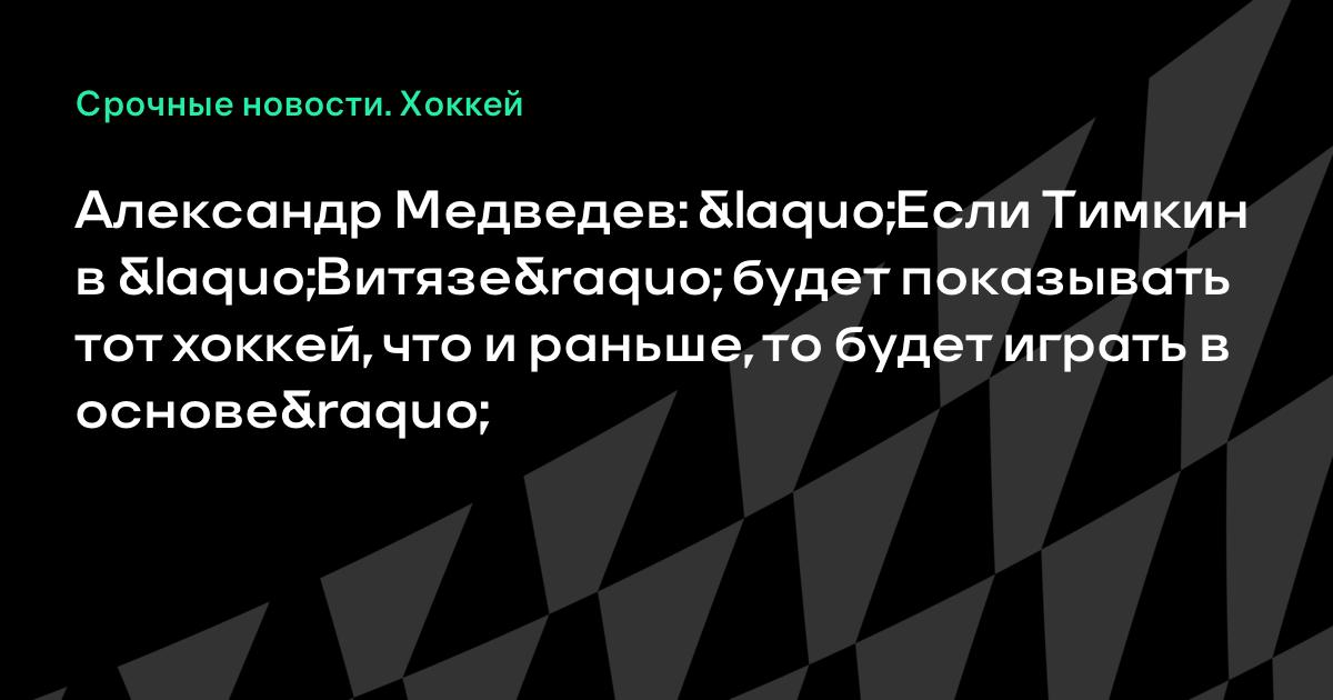 Александр Медведев: «Если Тимкин в «Витязе» будет показывать тот хоккей, что и раньше, то будет играть в основе»