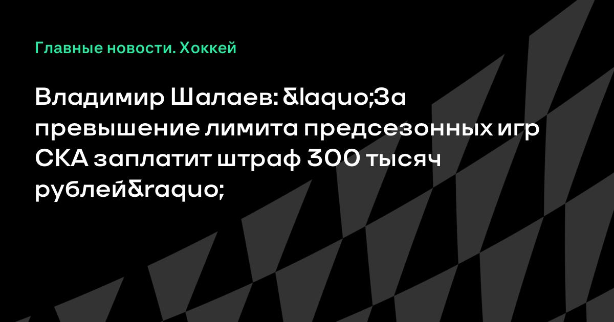 Владимир Шалаев: «За превышение лимита предсезонных игр СКА заплатит штраф 300 тысяч рублей»
