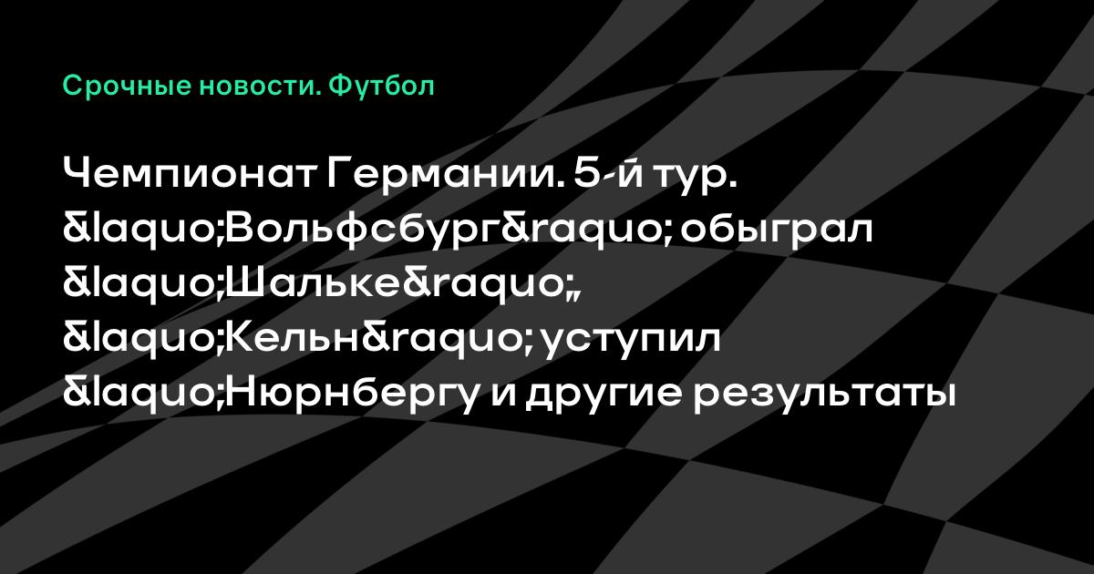 Чемпионат Германии. 5-й тур. «Вольфсбург» обыграл «Шальке», «Кельн» уступил «Нюрнбергу и другие результаты