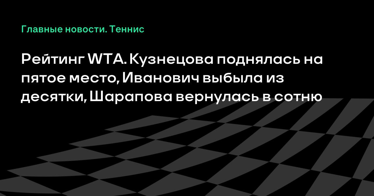 Рейтинг WTA. Кузнецова поднялась на пятое место, Иванович выбыла из десятки, Шарапова вернулась в сотню