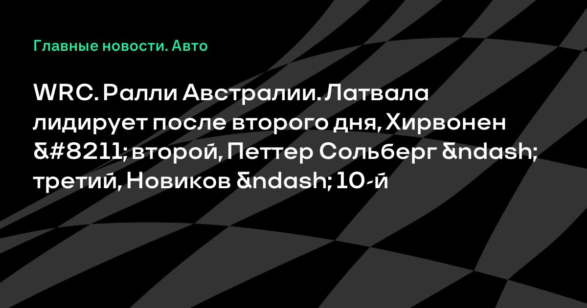 WRC. Ралли Австралии. Латвала лидирует после второго дня, Хирвонен – второй, Петтер Сольберг – третий, Новиков – 10-й