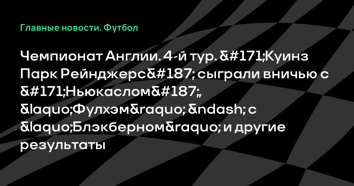 Чемпионат Англии. 4-й тур. «Куинз Парк Рейнджерс» сыграли вничью с «Ньюкаслом», «Фулхэм» – с «Блэкберном» и другие результаты