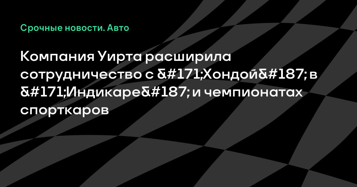 Компания Уирта расширила сотрудничество с «Хондой» в «Индикаре» и чемпионатах спорткаров