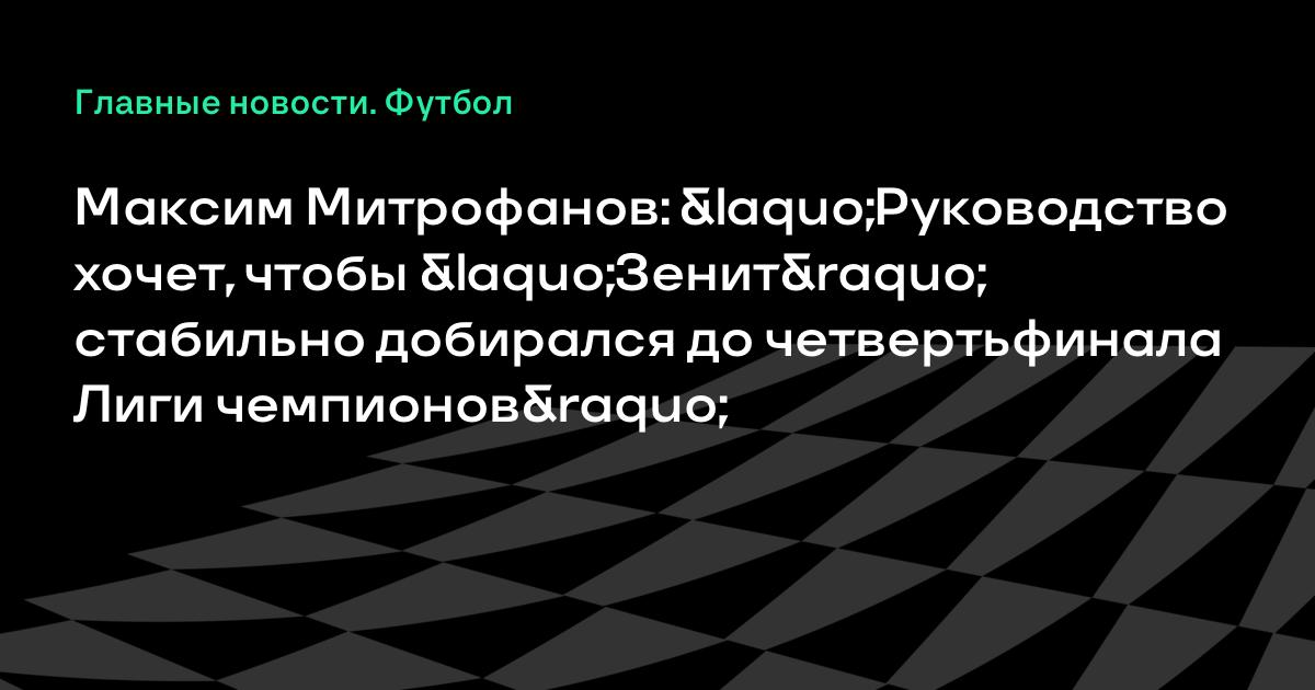 Максим Митрофанов: «Руководство хочет, чтобы «Зенит» стабильно добирался до четвертьфинала Лиги чемпионов»