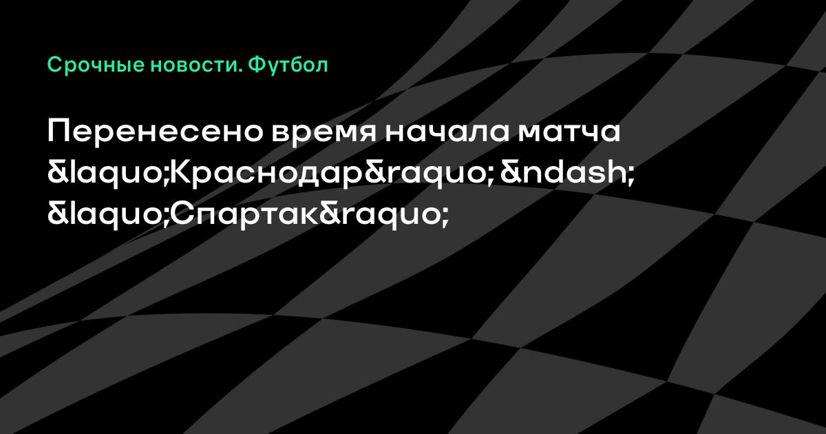 Время начала матча 25-го тура чемпионата России «Краснодар» – «Спартак» перенесено с 20.45 на 14.00 по московскому времени.