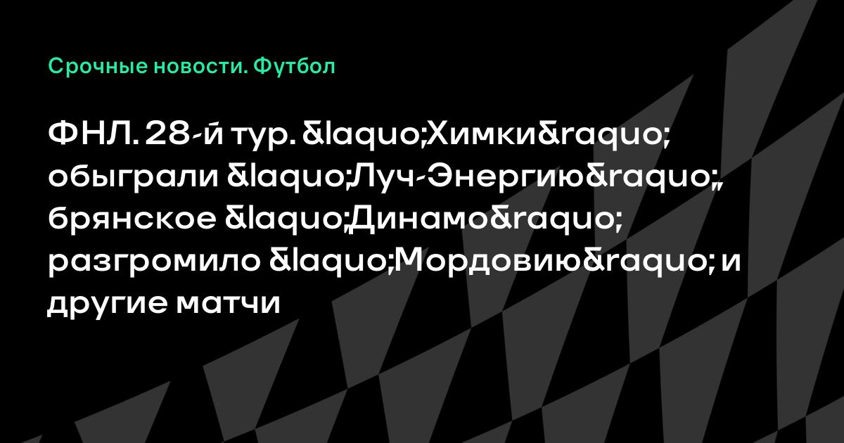 ФНЛ. 28-й тур. «Химки» обыграли «Луч-Энергию», брянское «Динамо» разгромило «Мордовию» и другие матчи