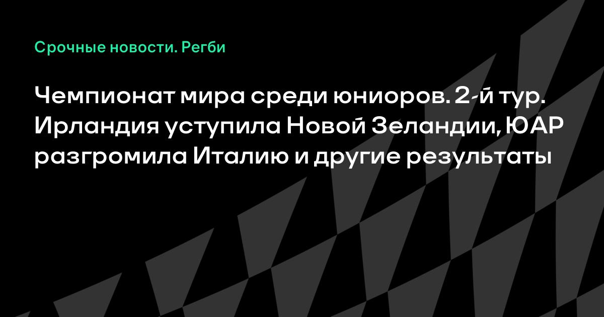 Чемпионат мира среди юниоров. 2-й тур. Ирландия уступила Новой Зеландии, ЮАР разгромила Италию и другие результаты