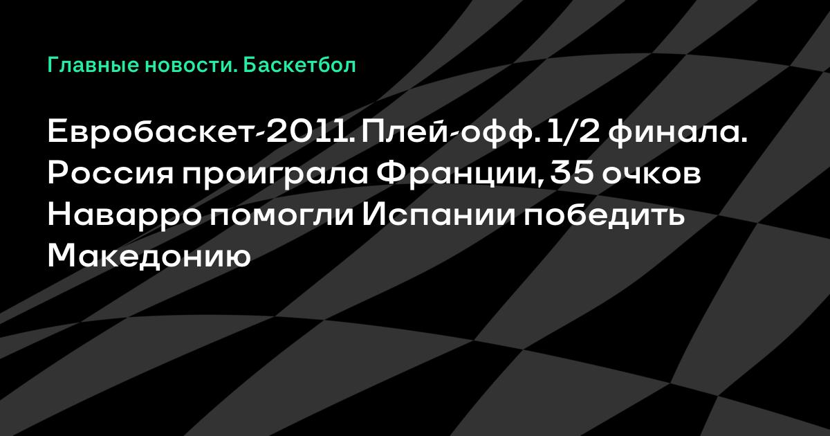 Евробаскет-2011. Плей-офф. 1/2 финала. Россия проиграла Франции, 35 очков Наварро помогли Испании победить Македонию
