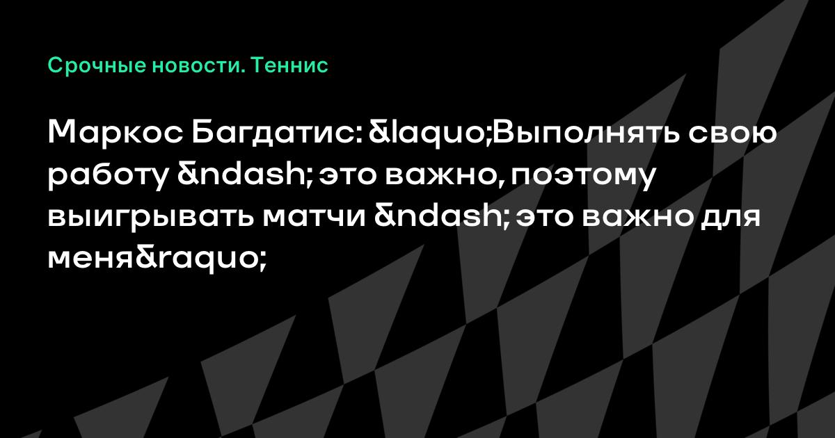 Маркос Багдатис: «Выполнять свою работу – это важно, поэтому выигрывать матчи – это важно для меня»