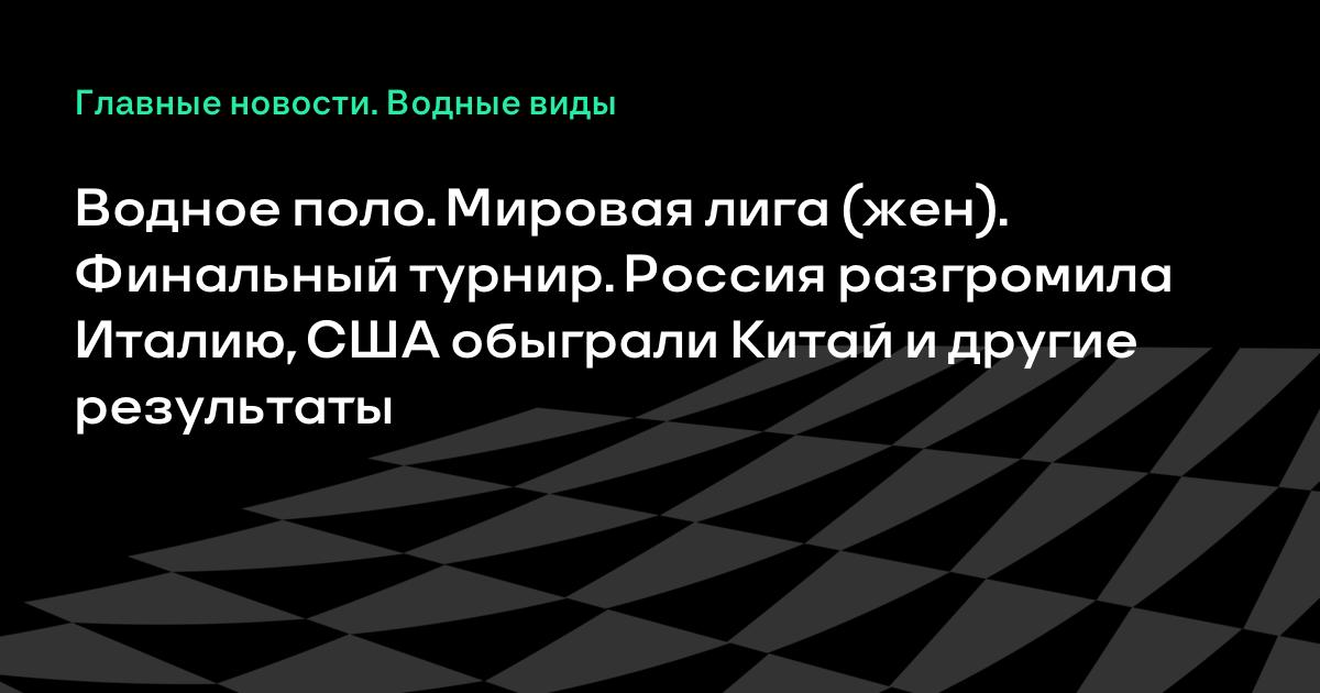 Водное поло. Мировая лига (жен). Финальный турнир. Россия разгромила Италию, США обыграли Китай и другие результаты