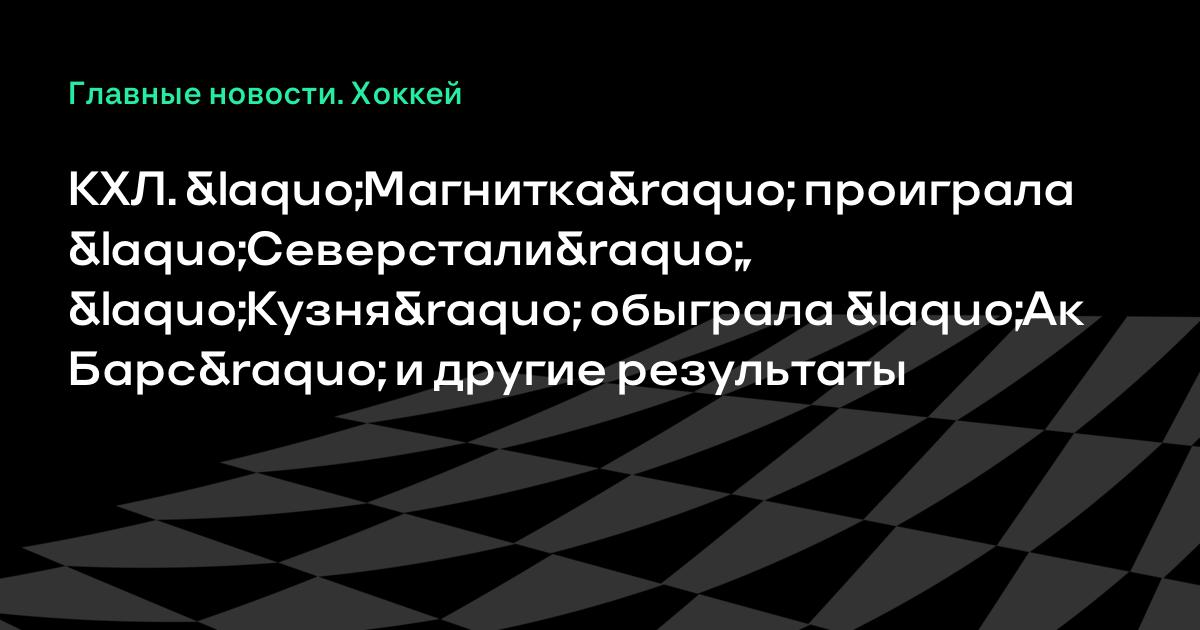 КХЛ. «Магнитка» проиграла «Северстали», «Кузня» обыграла «Ак Барс» и другие результаты