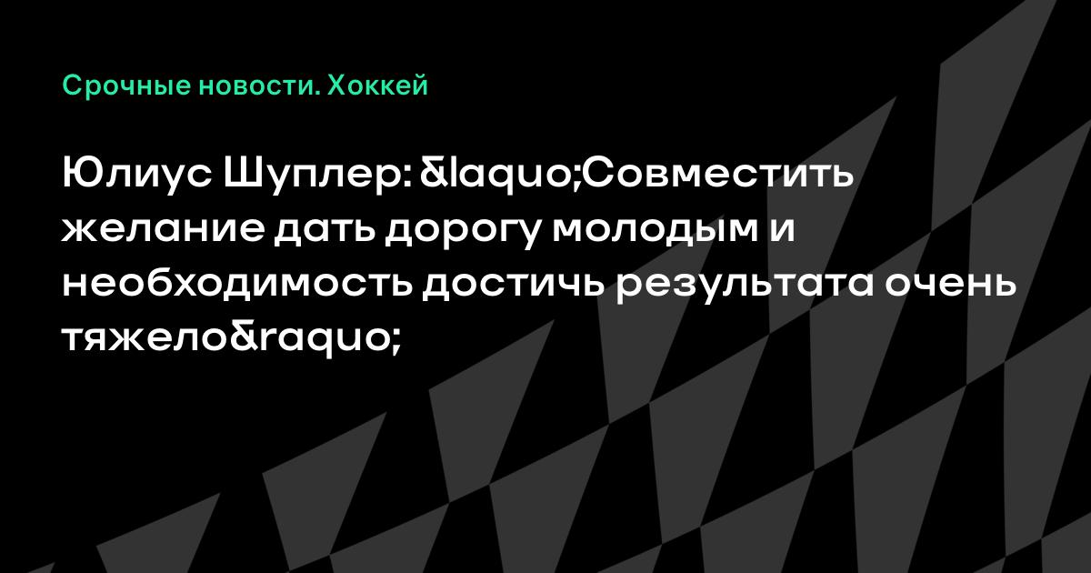 Юлиус Шуплер: «Совместить желание дать дорогу молодым и необходимость достичь результата очень тяжело»