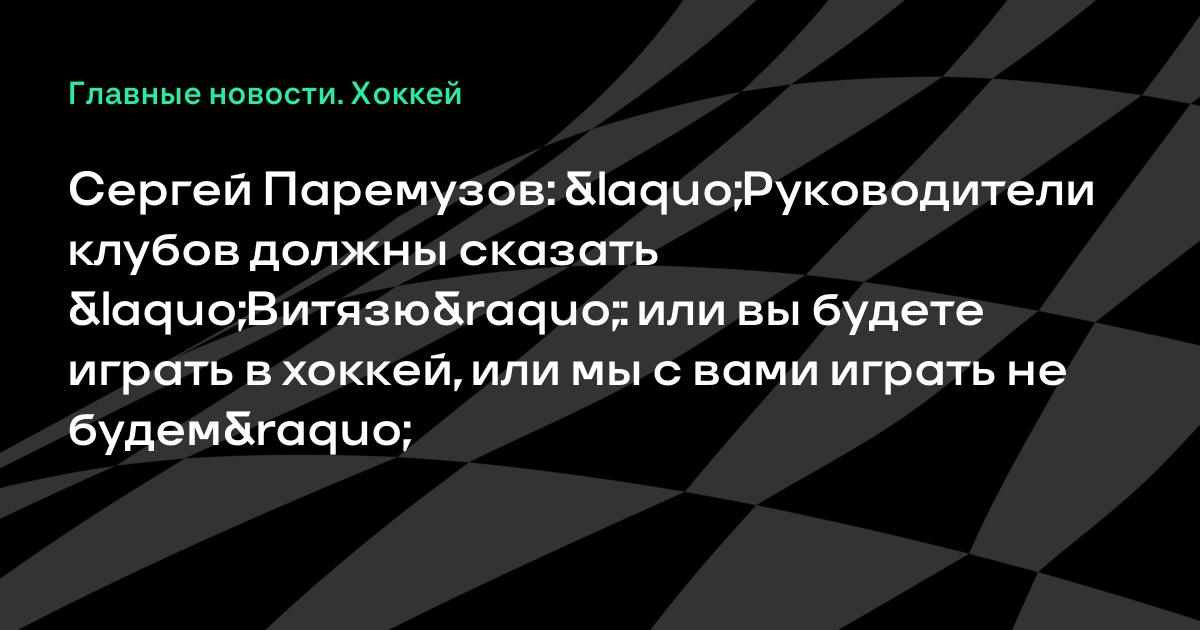 Руководители клубов должны сказать «Витязю» – или вы будете играть в хоккей, или мы с вами играть не будем. Этот вопрос решается при наличии политической воли в течение минуты», – цитирует Паремузова РИА Новости.