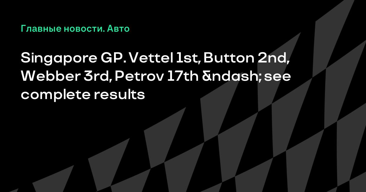 Singapore GP. Vettel 1st, Button 2nd, Webber 3rd, Petrov 17th – see complete results