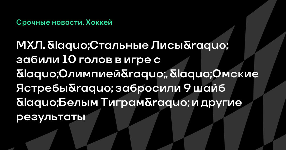 МХЛ. «Стальные Лисы» забили 10 голов в игре с «Олимпией», «Омские Ястребы» забросили 9 шайб «Белым Тиграм» и другие результаты