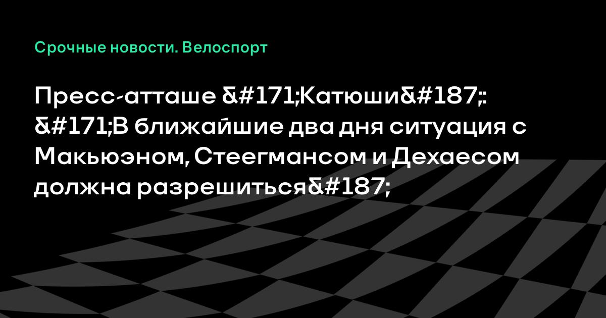 Пресс-атташе «Катюши»: «В ближайшие два дня ситуация с Макьюэном, Стеегмансом и Дехаесом должна разрешиться»
