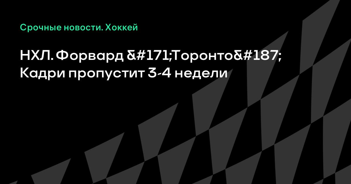 Нападающий «Торонто» Назем Кадри пропустит от 3 до 4 недель из-за растяжения связок левого колена, сообщает TSN.