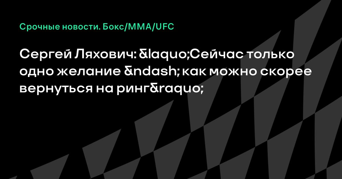 «Я возобновил тренировки, работаю над общефизической подготовкой. На следующей неделе собирюсь вернуться и в боксерский зал. Сейчас только одно желание – как можно скорее вернуться на ринг, хочу выступать регулярно и против самых сильных соперников», – цитирует Ляховича Fightnews.com.