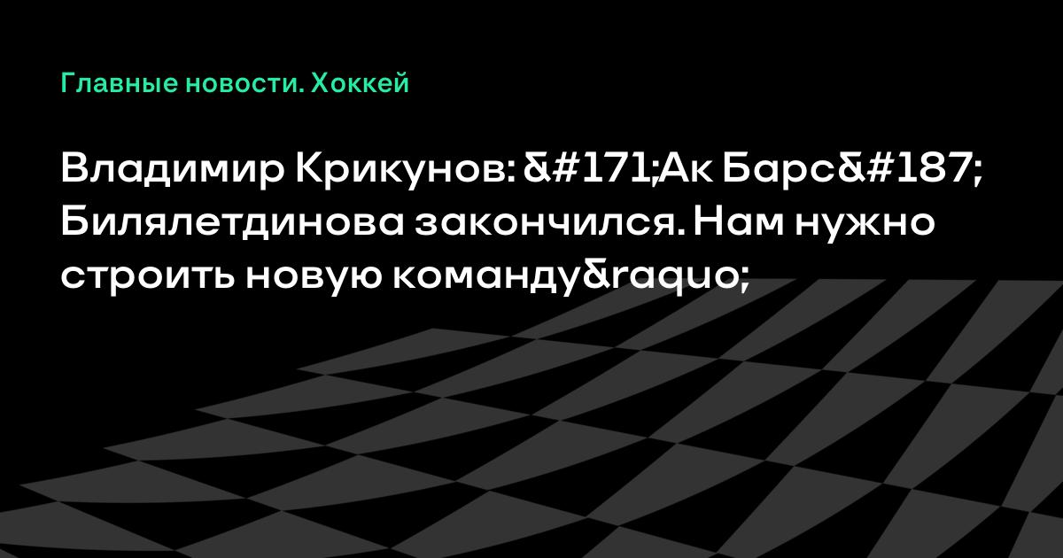 Владимир Крикунов: «Ак Барс» Билялетдинова закончился. Нам нужно строить новую команду»
