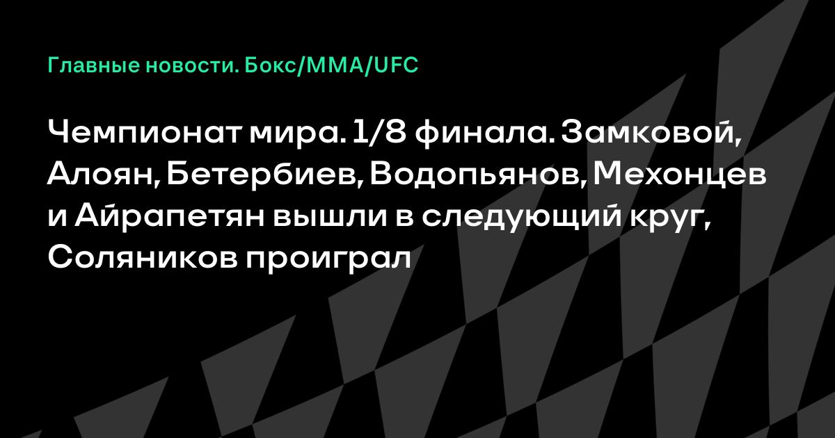 Чемпионат мира. 1/8 финала. Замковой, Алоян, Бетербиев, Водопьянов, Мехонцев и Айрапетян вышли в следующий круг, Соляников проиграл