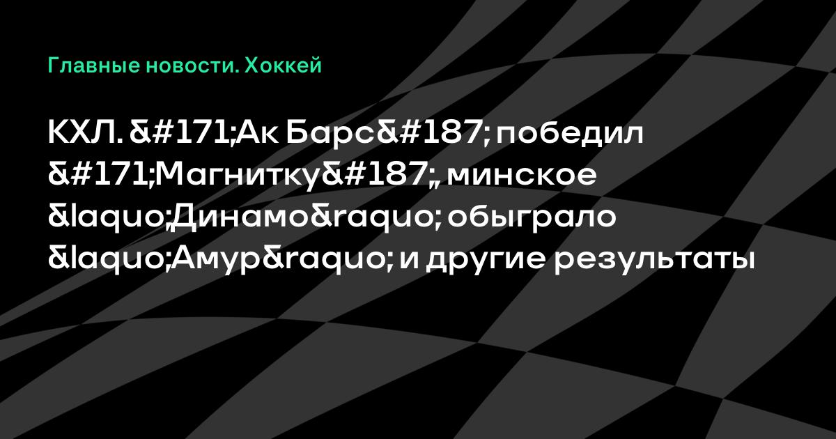 КХЛ. «Ак Барс» победил «Магнитку», минское «Динамо» обыграло «Амур» и другие результаты