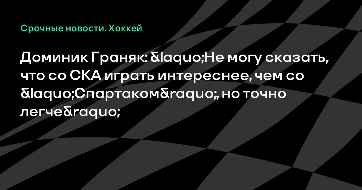 Доминик Граняк: «Не могу сказать, что со СКА играть интереснее, чем со «Спартаком», но точно легче»