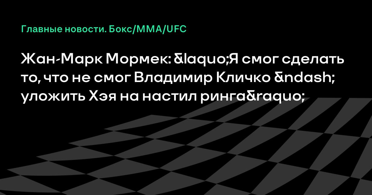 Напомним, что в четвертом раунде боя Мормек смог отправить Хэя в нокдаун, однако проиграл в итоге поединок техническим нокаутом в седьмом раунде.