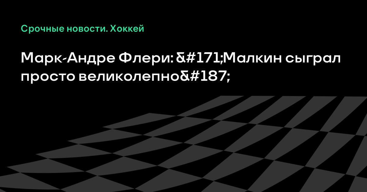 Марк-Андре Флери: «Малкин сыграл просто великолепно»