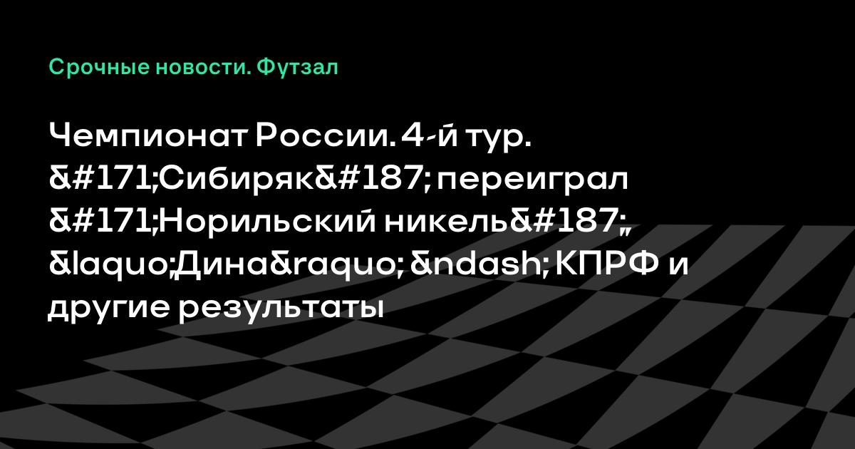Чемпионат России. 4-й тур. «Сибиряк» переиграл «Норильский никель», «Дина» – КПРФ и другие результаты