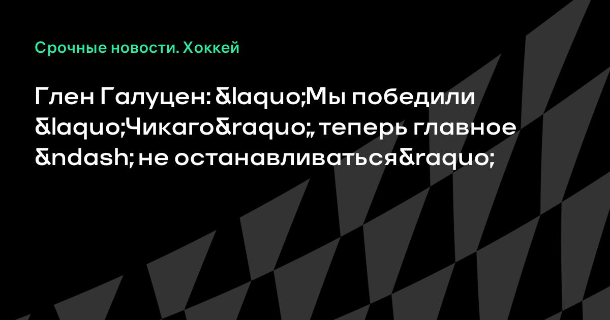 Глен Галуцен: «Мы победили «Чикаго», теперь главное – не останавливаться»
