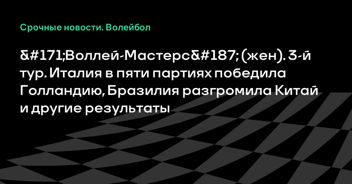 «Воллей-Мастерс» (жен). 3-й тур. Италия в пяти партиях победила Голландию, Бразилия разгромила Китай и другие результаты