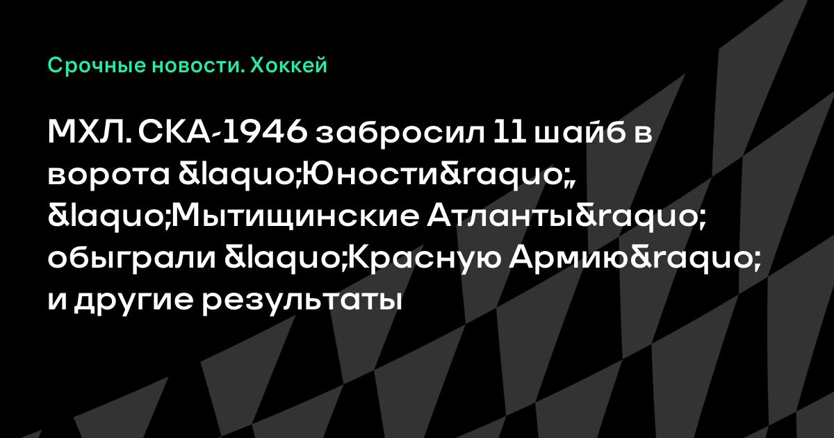МХЛ. СКА-1946 забросил 11 шайб в ворота «Юности», «Мытищинские Атланты» обыграли «Красную Армию» и другие результаты