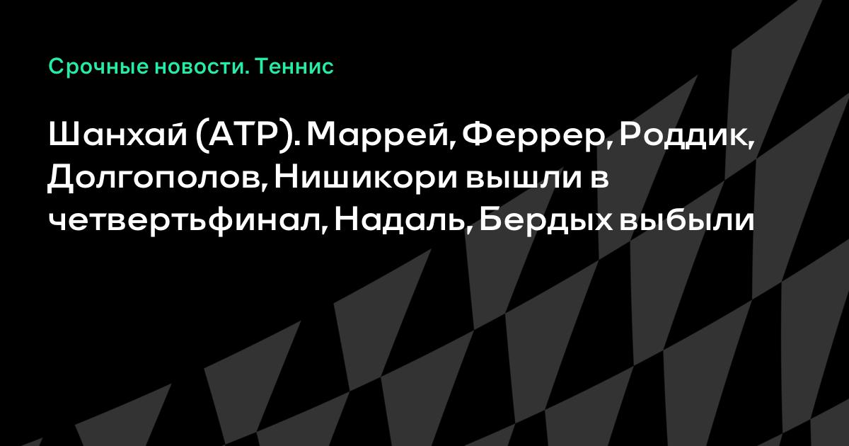 Шанхай (АТР). Маррей, Феррер, Роддик, Долгополов, Нишикори вышли в четвертьфинал, Надаль, Бердых выбыли