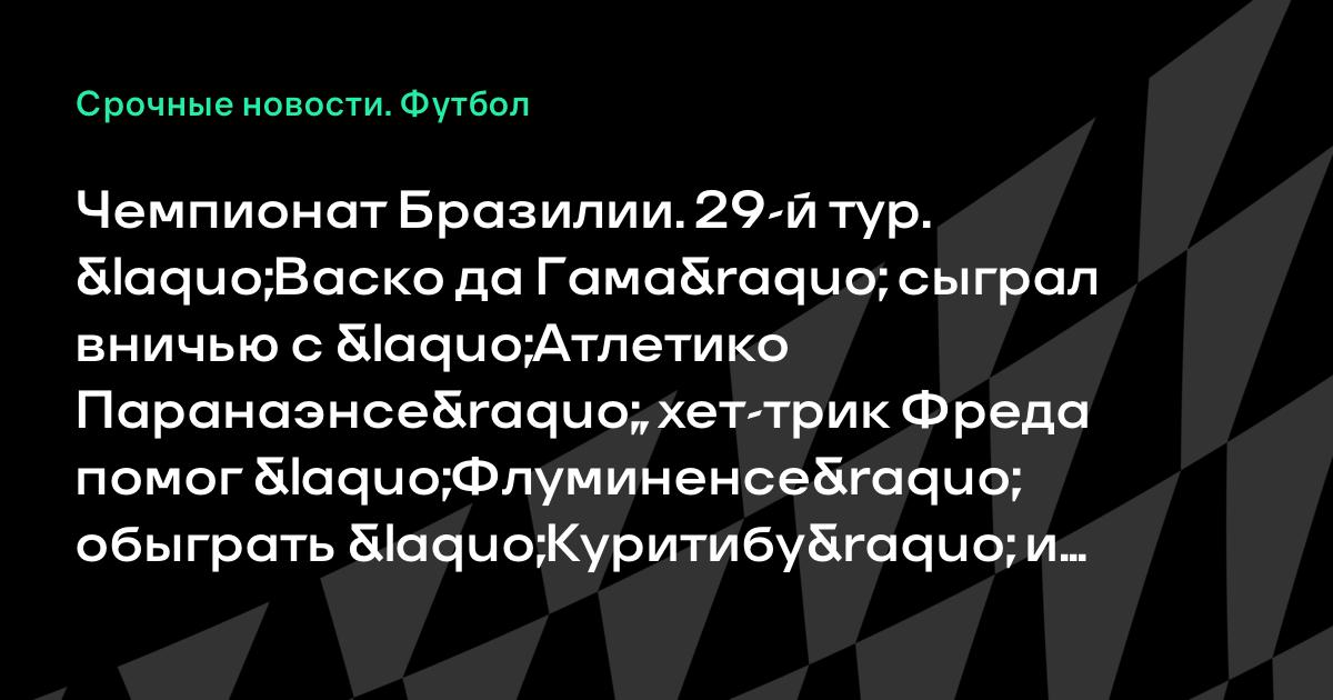 Чемпионат Бразилии. 29-й тур. «Васко да Гама» сыграл вничью с «Атлетико Паранаэнсе», хет-трик Фреда помог «Флуминенсе» обыграть «Куритибу» и другие результаты