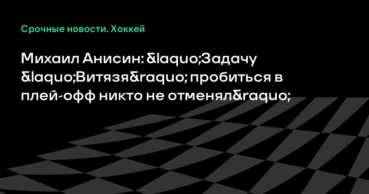 Задача пробиться в плей-офф по-прежнему стоит перед нами. Ее никто не отменял. Сезон длинный, и сейчас только начало. Поэтому не надо делать выводов, что если нам не везет на старте, то мы не сможем ничего показать. Любому клубу лиги сейчас еще рано делать прогнозы о выходе в плей-офф, случиться может что угодно. Хоккей – это игра, это интрига. Единственное, что я могу сказать точно, мы сделаем все, чтобы выполнить эту задачу», – сказал Анисин официальному сайту «Витязя».
