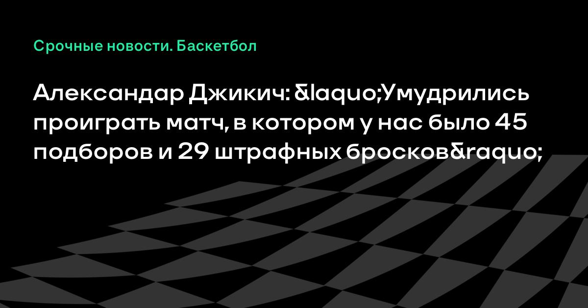 Александар Джикич: «Умудрились проиграть матч, в котором у нас было 45 подборов и 29 штрафных бросков»